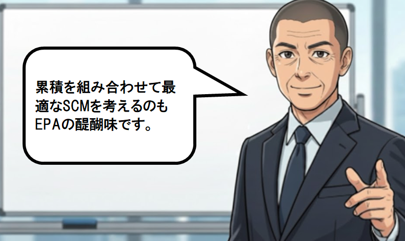 同じ「タイからの材料」でも、どのEPAを使うかで累積の範囲が変わります。