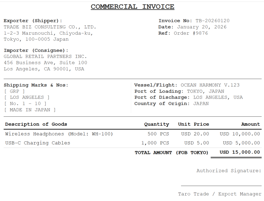 - 他法令との関連: 食品衛生法や薬機法に該当する物品の場合、インボイスの品名記載がそれらの申請書類と一致していなければなりません。